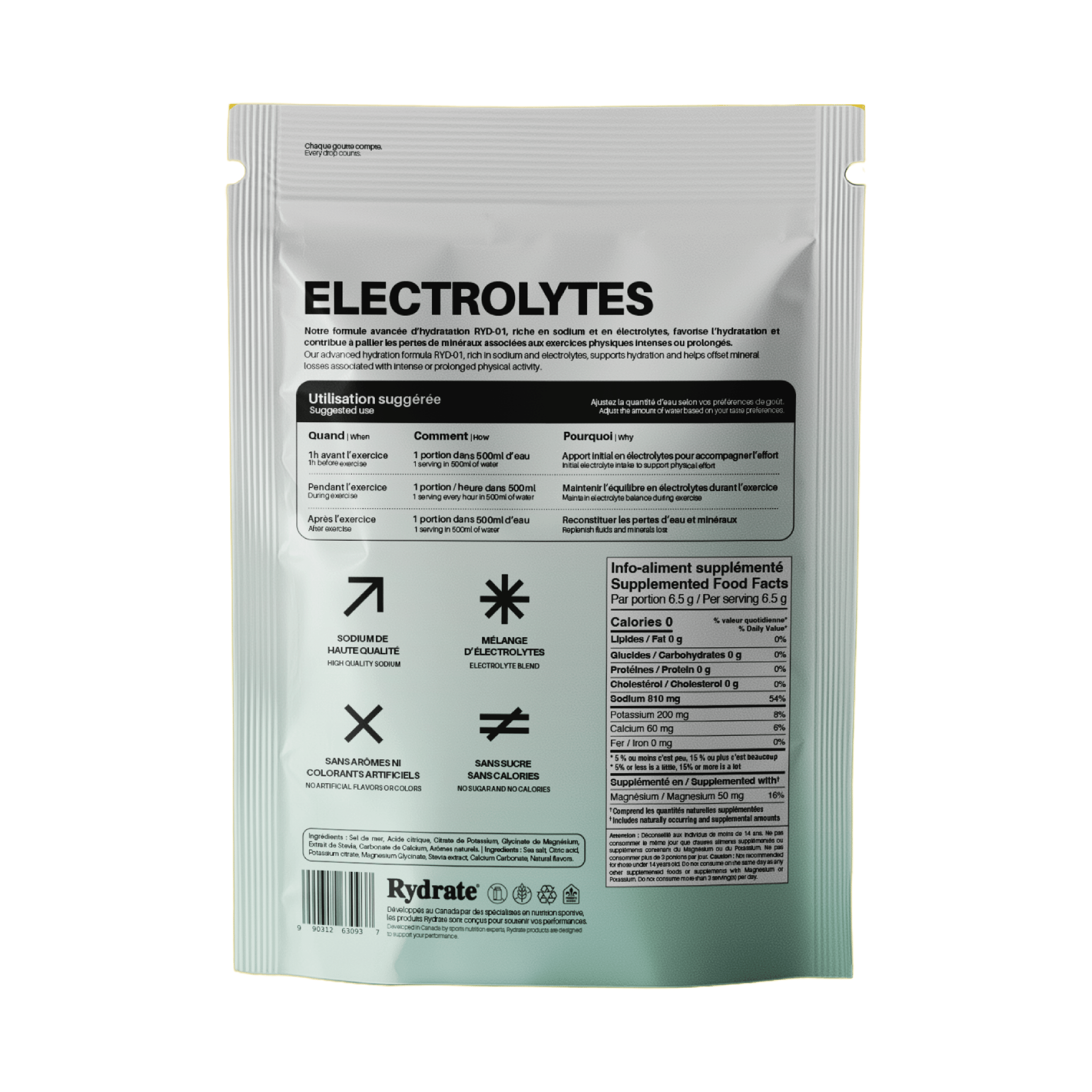 - Pendant l’entraînement : pour compenser les pertes en sodium, potassium et magnésium causées par la transpiration et maintenir la performance musculaire et nerveuse.