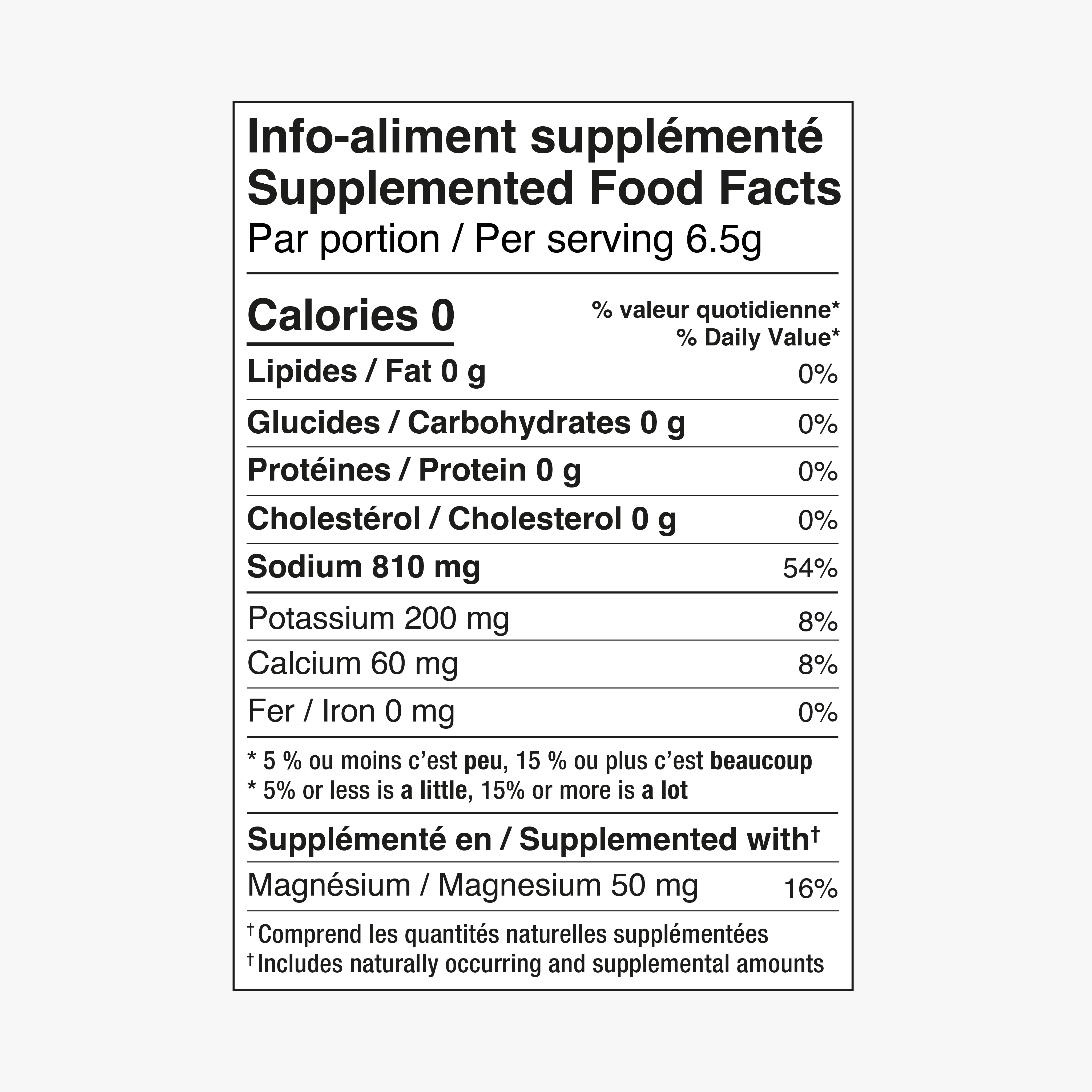 • Optimal and rapid hydration thanks to a complete electrolyte profile including 810 mg of sodium, 200 mg of potassium and 50 mg of magnesium per serving.