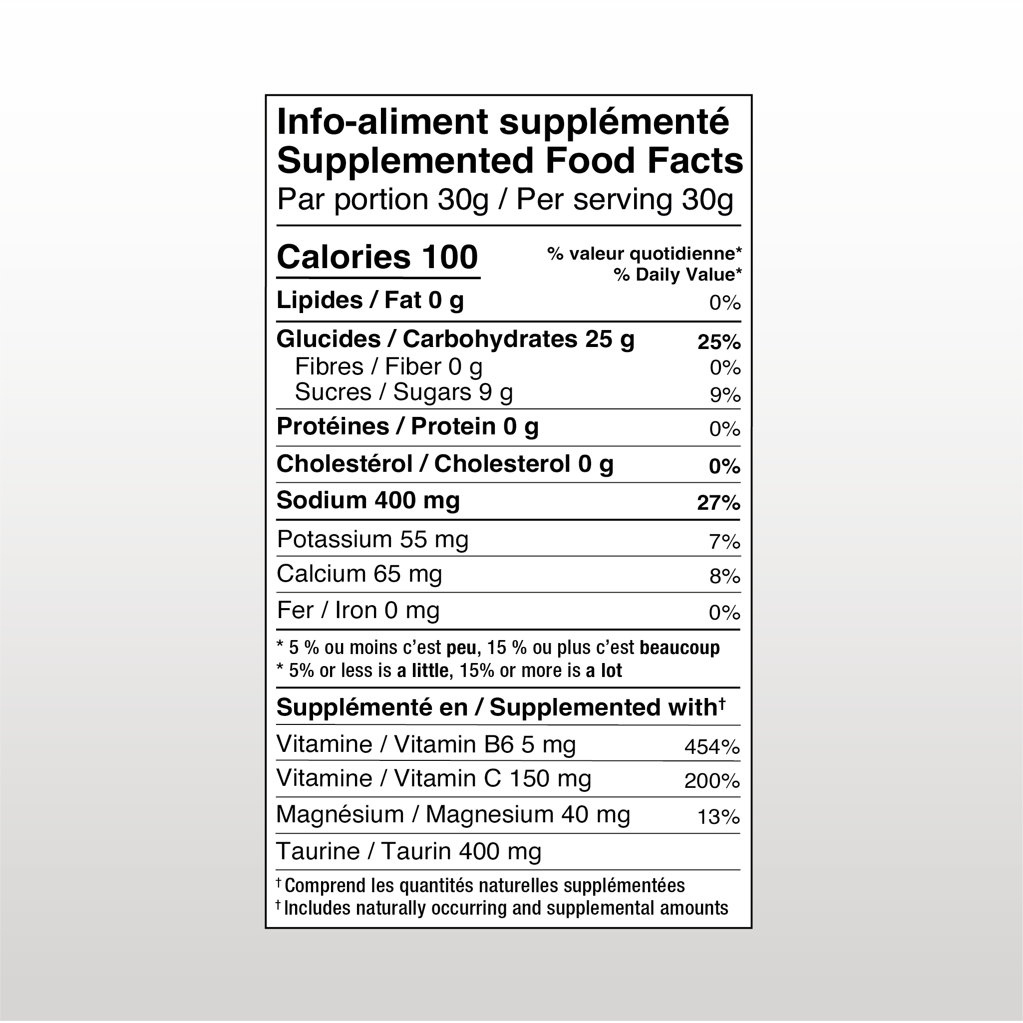 A 500 ml serving provides 25 g of carbohydrates and 400 mg of sodium.