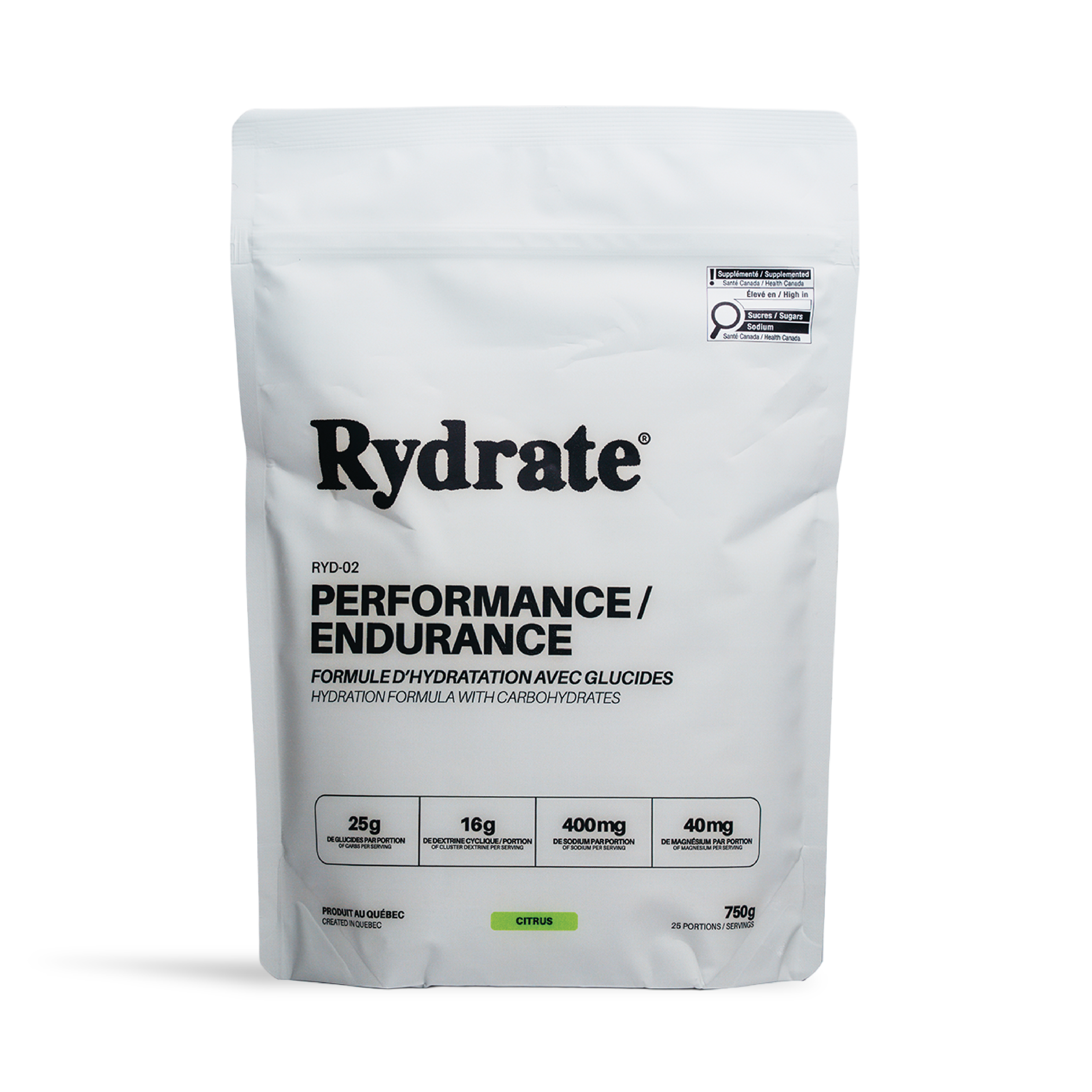 RYD-02 adds 25g of carbohydrates to provide energy and support prolonged efforts, while maintaining optimal hydration.
